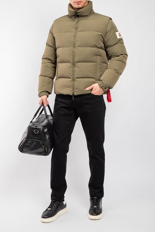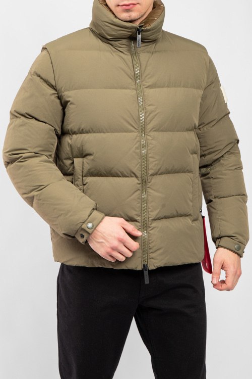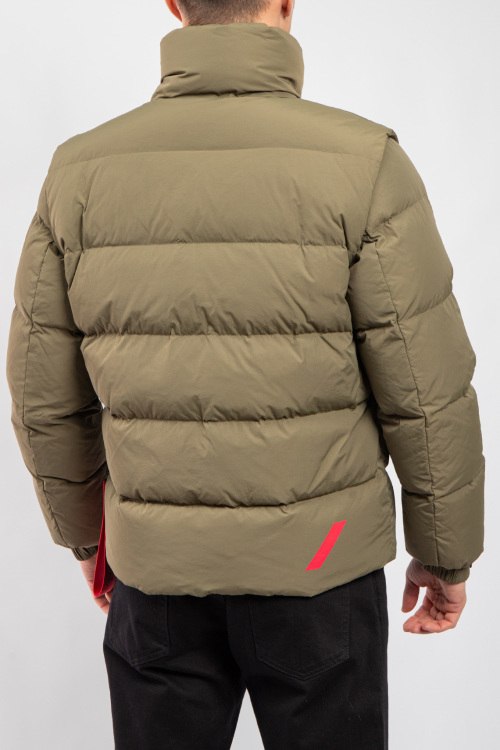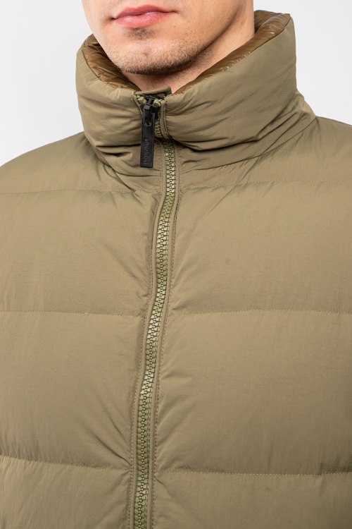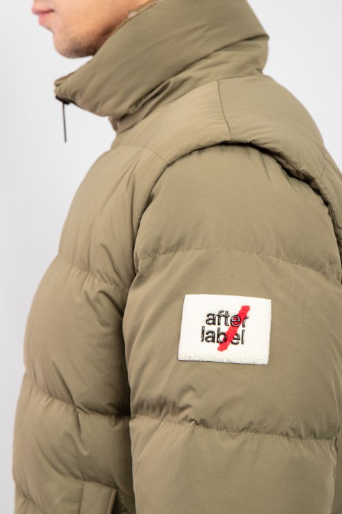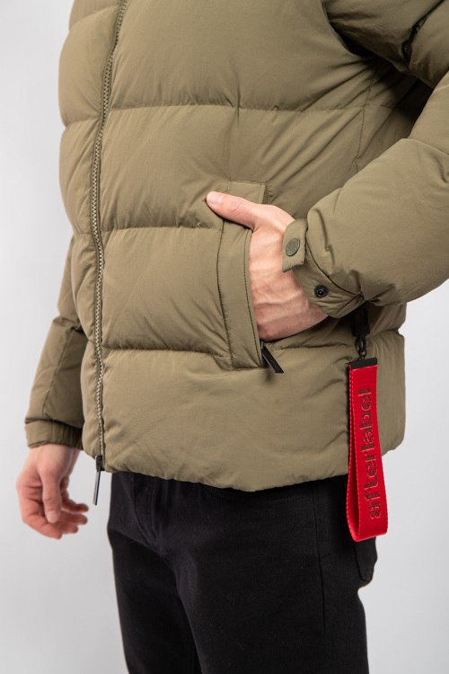 Детали: Мужская оливковая куртка на пуху от After Label (Афтер Лейбл). Стеганый дизайн, высокий воротник, логотип на рукаве, съемные рукава, боковые карманы, застежка-молния, классическая длина, наполнитель из микса пуха и пера