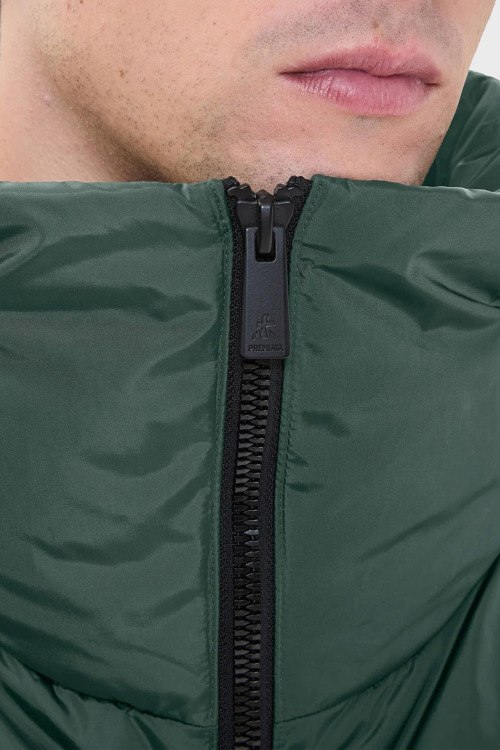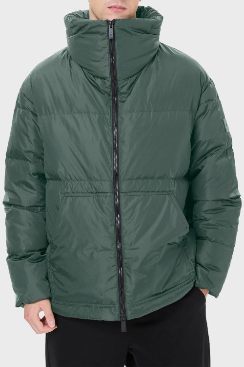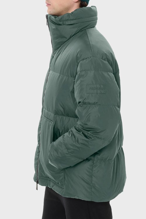 Детали: Мужская зеленая зимняя куртка от Premiata (Премиата). Высокий объемный воротник, боковые карманы, застежка-молния, удлиненная длина