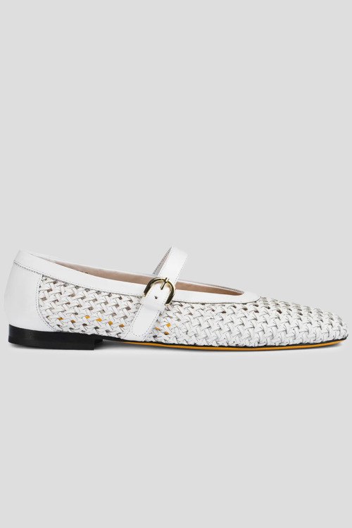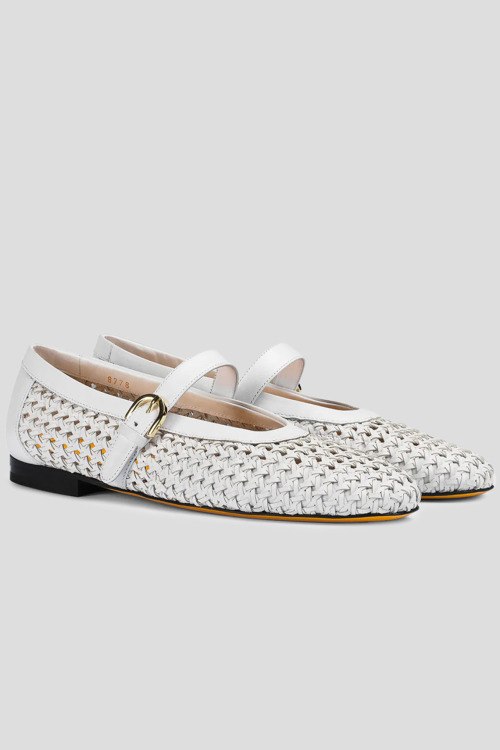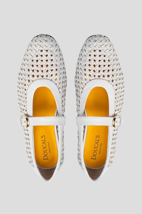 Детали: Женские белые балетки из натуральной кожи от Doucal's (Дукалс). Плетенный дизайн, кожаная стелька с логотипом, тонкий регулируемый ремешок