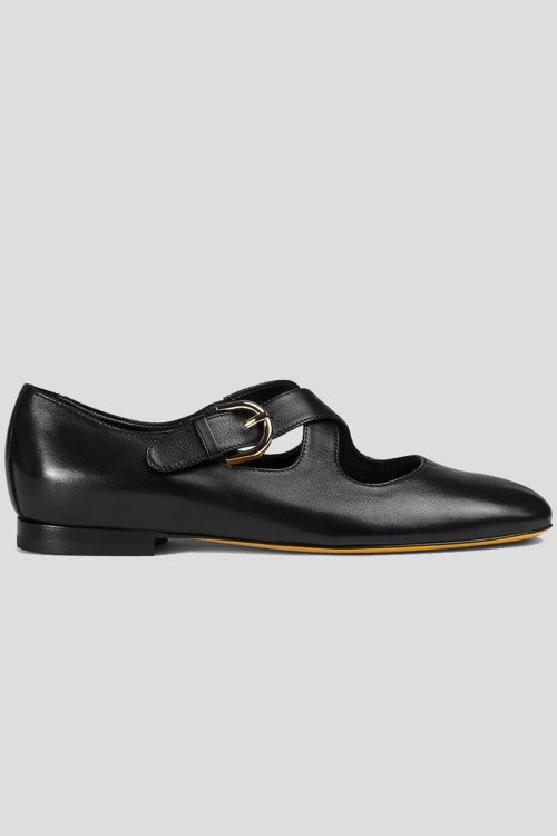 Детали: Женские черные балетки из натуральной кожи от Doucal's (Дукалс). Миндалевидный носок, кожаная стелька с логотипом, перекрестные ремешки спереди, блочный маленький каблук