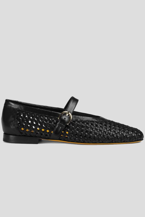 Детали: Женские черные балетки из натуральной кожи от Doucal's (Дукалс). Плетенный дизайн, кожаная стелька с логотипом, тонкий регулируемый ремешок