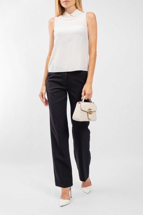 Женская белая шелковая блуза от Emporio Armani (Эмпорио Армани). Модель без рукавов, отложной воротник, классическая длина.
