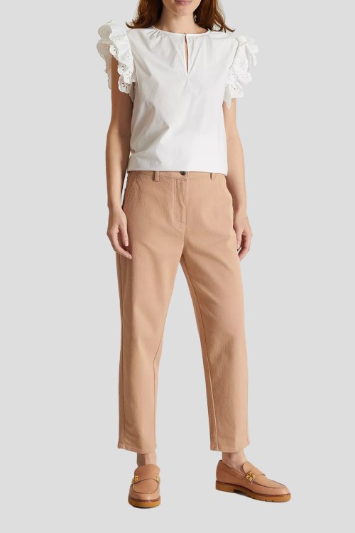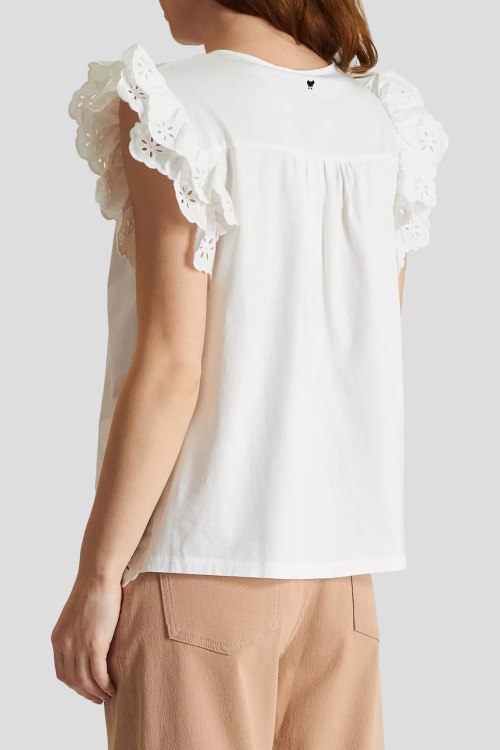Детали: Женская белая блуза из хлопка от Max Mara (Макс Мара). Круглый вырез горловины, застежка на пуговицу, короктие перфорированные рукава,