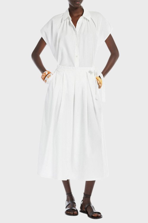 Детали: Женская белая блуза Vallo из хлопка от Max Mara Weekend (Макс Мара Викенд). Классический воротник, застежка на пуговицы, короткие рукава, ровный низ изделия