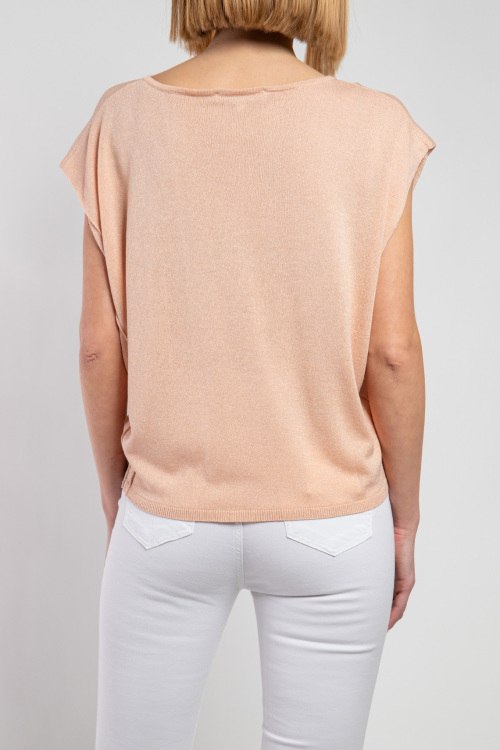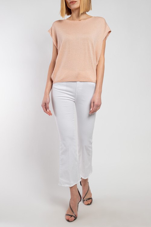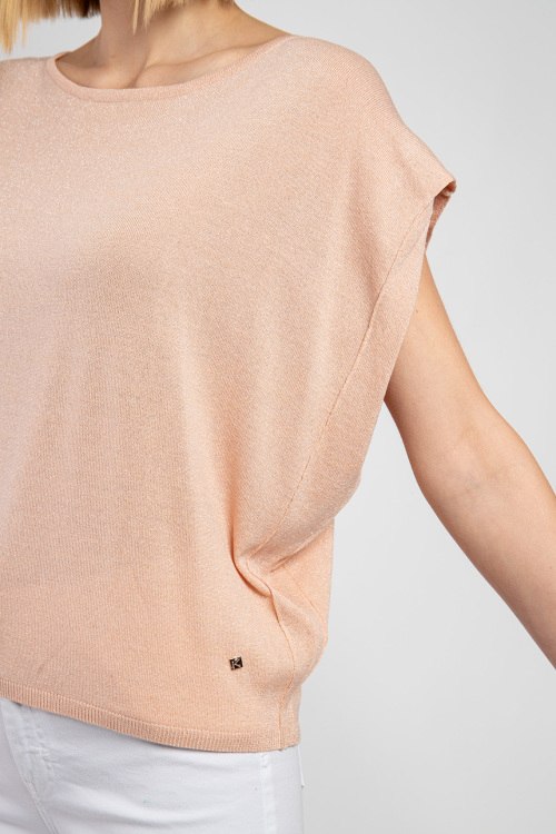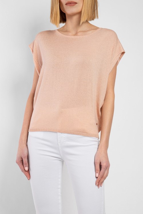 Детали: Женская бежевая блуза из вискозы от Kocca (Кокка). Дизайн с люрексом, круглый вырез горловины, короткий рукав, классическая длина