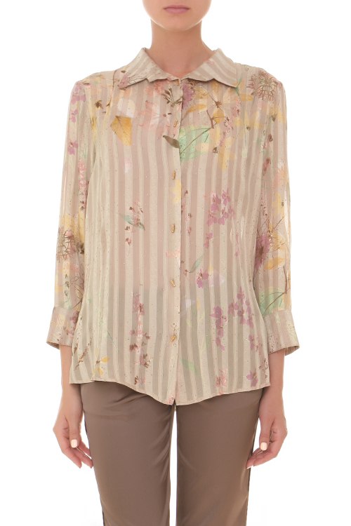 Детали: Блуза свободного кроя на пуговицах с укороченным рукавом и воротником