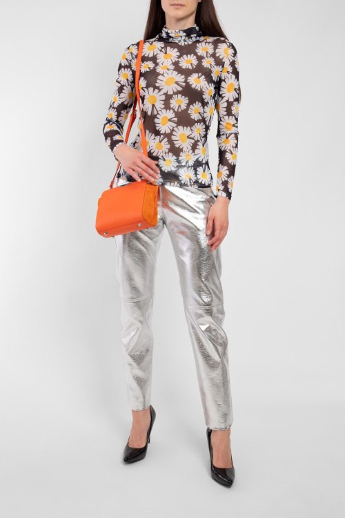 Женская черная хлопковая блуза от Peaceminusone (Писминусван). Полупрозрачный дизайн, принт в белые ромашки по всей поверхности, воротник-стойка, классическая длина. Замеры: длина по спинке 59 см, полуобхват груди 45,5 см, 43,5 см, ширина рукава 14,5 см.