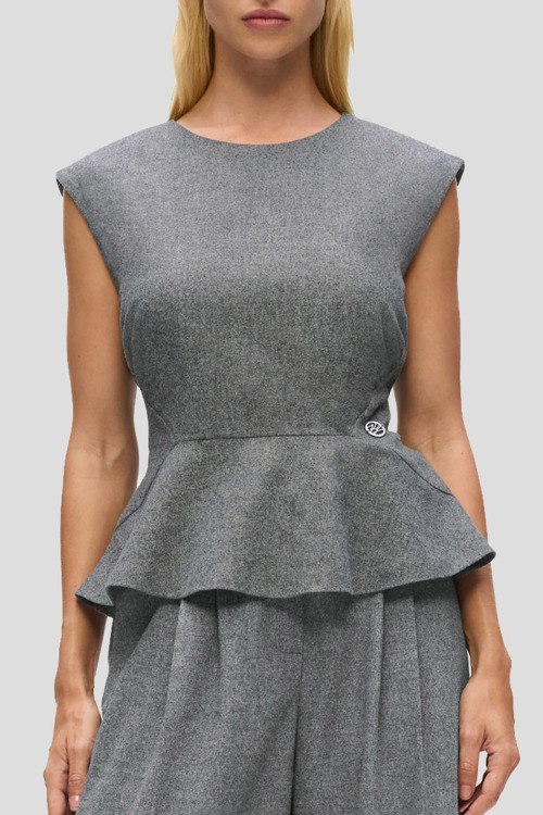 Детали: Женский серый топ-баска из шерстяного микса от Karl Lagerfeld (Карл Лагерфельд). Модель без рукавов, круглый вырез горловины, приталенный фасон, значок логотипа, застежка-молния на спине, классическая длина