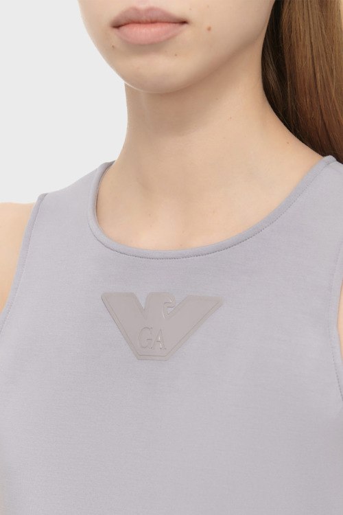 Детали: Женский сиреневый топ из полиэстера и вискозы от Emporio Armani (Эмпорио Армани). Круглый вырез горловины, застежка-молния на спине, модель без рукавов, патч-лого на груди