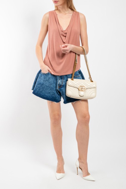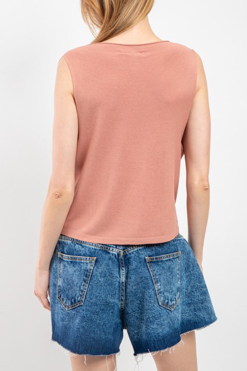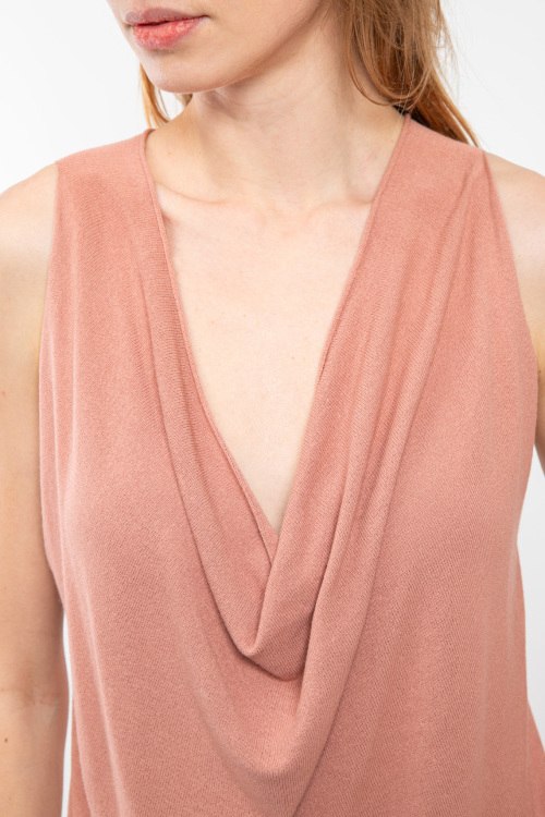 Женская светло-терракотовая блуза из вискозы от Kontatto (Контатто). Модель без рукавов, V-образный вырез, классическая длина. Замеры для размера UNI: длина: 56 см, ширина по груди: 45 см, ширина по талии: 45 см.