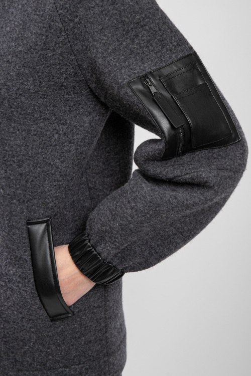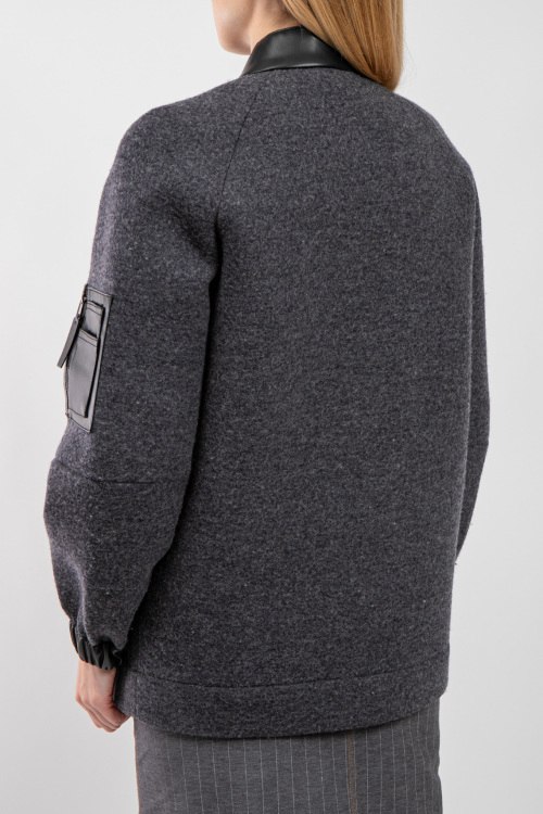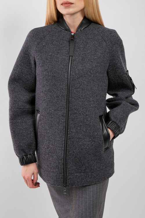 Женский темно-серый шерстяной бомбер Limosa от Max Mara (Макс Мара). Воротник-стойка из экокожи, боковые карманы, один карман на рукаве, застежка-молния, манжеты на резинке, удлиненная длина.