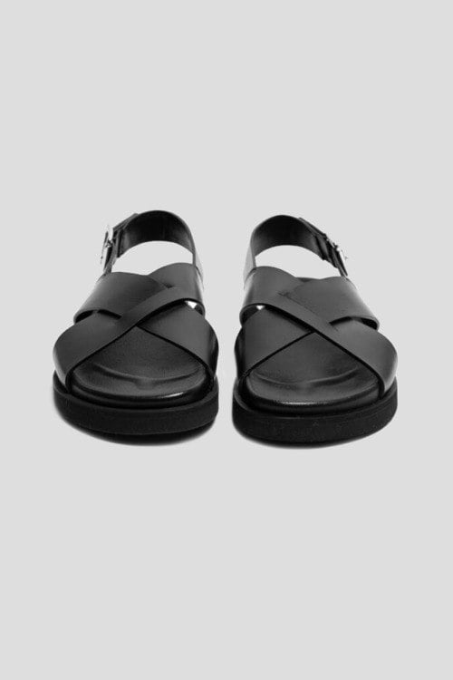 Детали: Женские черные кожаные босоножки от Guglielmo Rotta (Гульельмо Ротта). Модель из гладкой кожи, ремешки крест-накрест, ремешок с пряжкой на пятке, закругленный носок