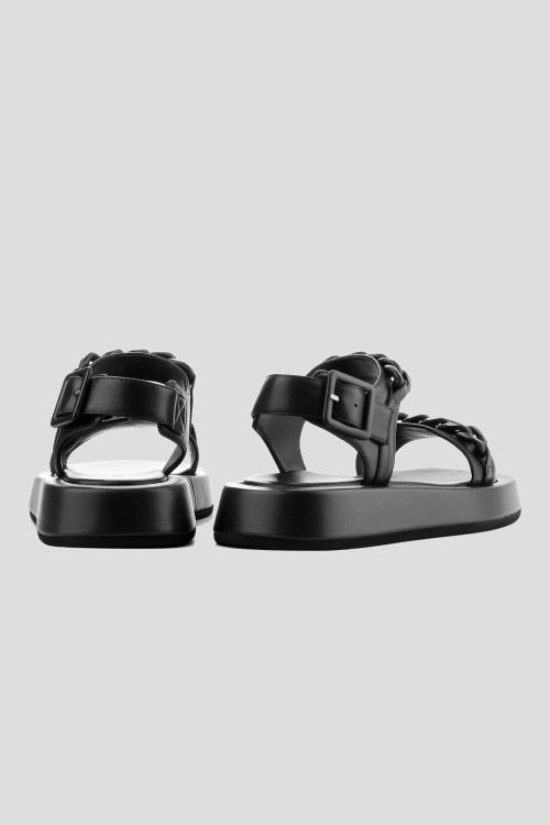 Детали: Женские черные кожаные босоножки от Le Berdes (Ле Бердес). Модель из гладкой кожи, ремешки украшены цепочкой в тон изделия, ремешок с пряжкой на пятке, закругленный носок, кожаная стелька. Полнота модели: средняя. Замеры стельки: р.36 (23,5 см),р.37 (24 см),р.38 (24,5 см),р.39 (25 см),р.40 (25,5 см),р.41 (26 см),р.42 (26,5 см)