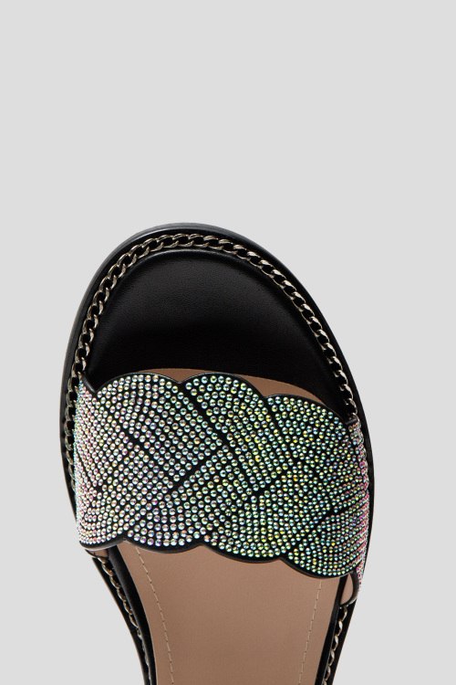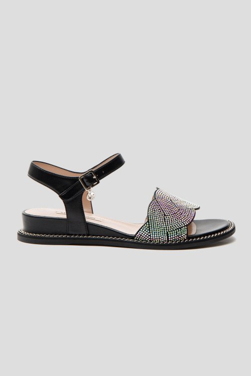 Детали: Женские черные босоножки из натуральной кожи от Marino Fabiani (Марино Фабиани). Закруглённый носок, застежка на регулируемый ремешок на щиколотке, декорирована кристаллами спереди. Высота танкетки: 3 см