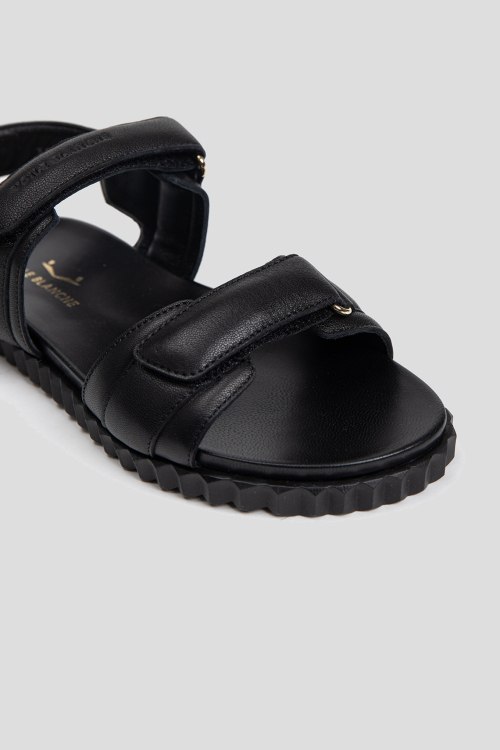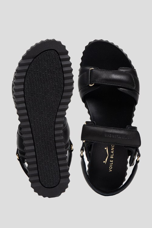 Детали: Женские черные босоножки из натуральной кожи от Voile Blanche (Вуаль Бланш). Закругленный носок, тонкие ремешки на липучке, застежка на щиколотке, плоская подошва