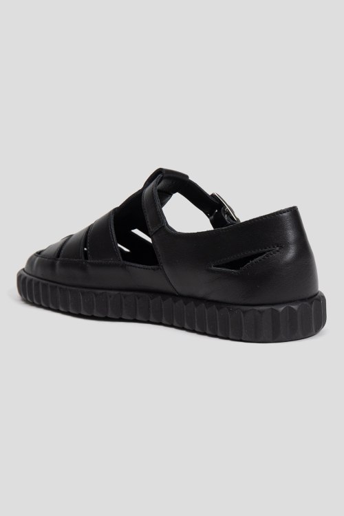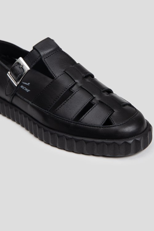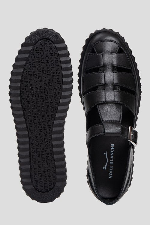 Детали: Женские черные сандалии из натуральной кожи от Voile Blanche (Вуаль Бланш). Закругленный носок, перекрестные ремешки, регулируемый ремешок, металлическая пряжка, рельефная подошва