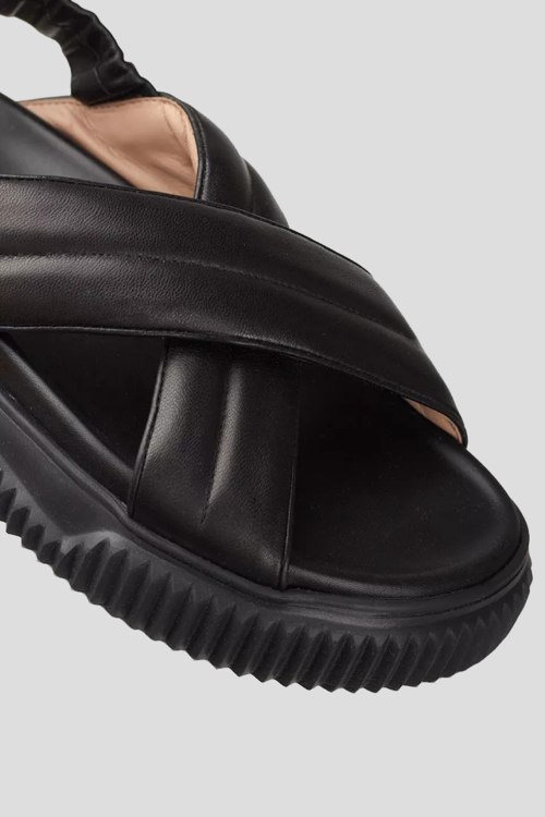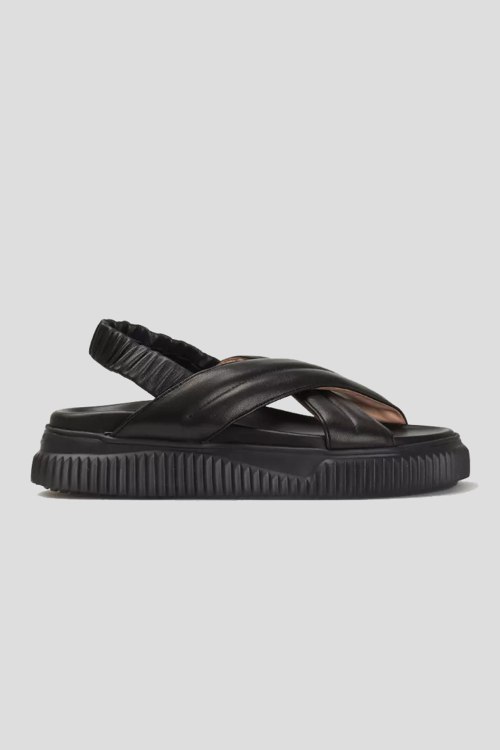 Детали: Женские черные кожаные босоножки от Voile Blanche (Вуаль Бланш). Модель из гладкой кожи, ремешки крест-накрест, закругленный носок, эластичный ремешок на пятке