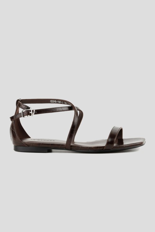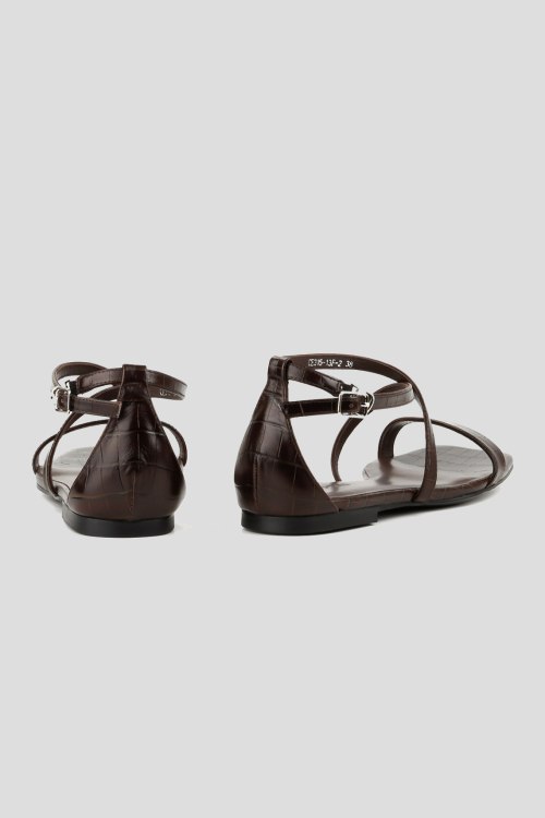 Детали: Женские темно-коричневые босоножки из натуральной кожи от Le Berdes (Ле Бердес). Квадратный носок, тонкие перекрестные ремешки, закрытая пятка, плоская подошва. Замеры: длина стельки: размер 35 (23 см), 36 (23,5 см), 37 (24 см), 38 (24,5 см), 39 (25 см),40 (25,5)