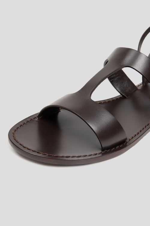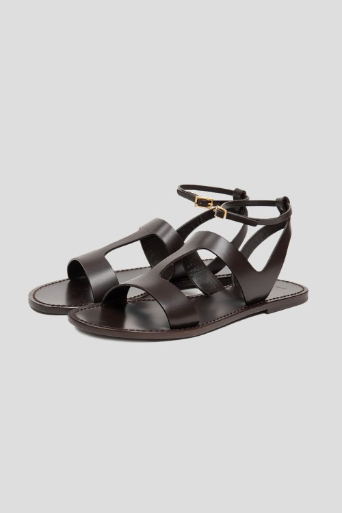 Женские темно-коричневые босоножки из натуральной кожи от Max Mara Weekend (Макс Мара Викенд). Закругленный носок, кожаная стелька с логотипом бренда, тонкие ремешки с регулировкой на щиколотке