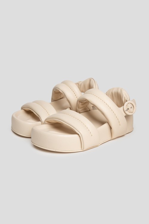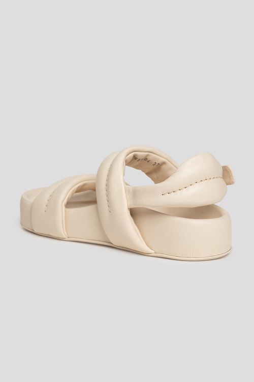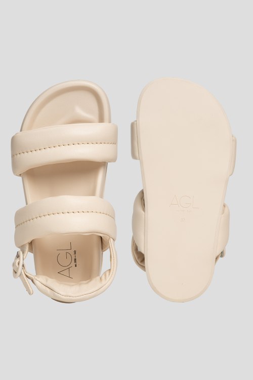 Детали: Женские босоножки молочного оттенка из натуральной кожи от AGL (Аттилио Джусти Леомбруни). Закругленный носок, широкие дутые ремешки, регулируемый ремешок на заднике, толстая подошва, анатомическая стелька с логотипом бренда