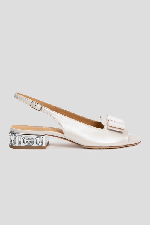 Детали: Женские перламутровые босоножки из натуральной кожи от Giovanni Fabiani (Джованни Фабиани). Закругленный носок, тонкий регулируемый ремешок, блочный каблук с кристаллами