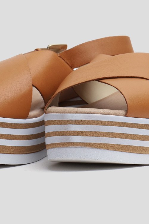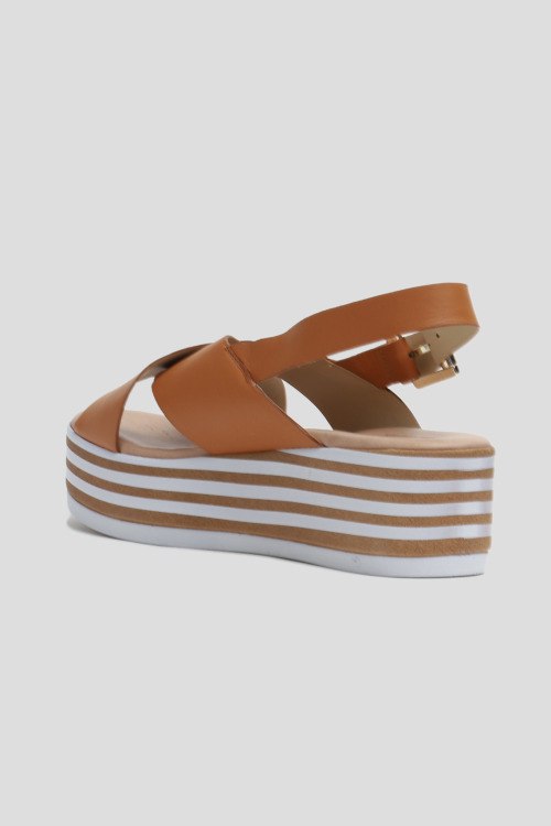 Детали: Женские рыжие босоножки из кожи от Repo (Репо). Модель на высокой резиновой подошве, закругленный носок, спереди переплетенные ремешки, застежка на регулируемый ремешок на щиколотке, фирменный логотип бренда на стельке. Измерения: высота подошвы: 4-5 см (на размер 38)