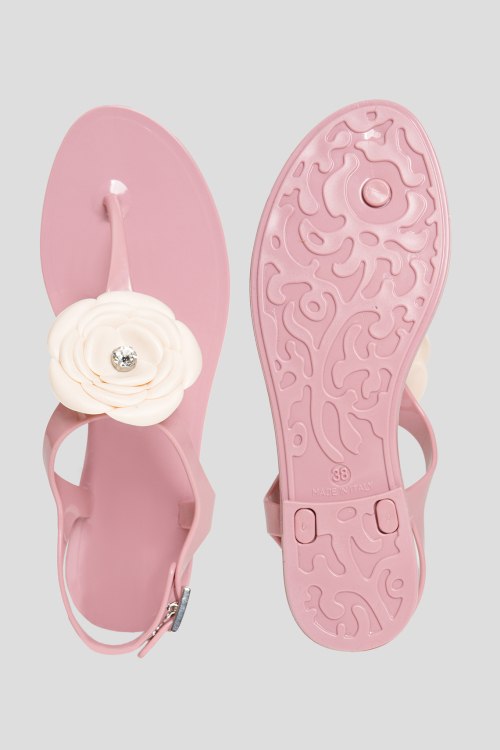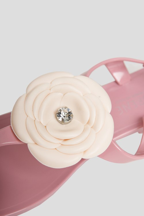 Детали: Женские розовые сандалии от Amarene (Амарене). Передний ремешок декорирован цветком молочного оттенка, ремешок с пряжкой на пятке, миндалевидный носок, плоская подошва