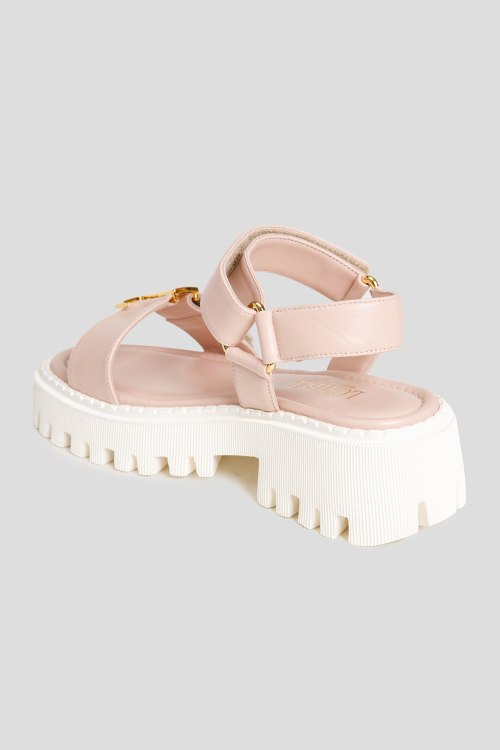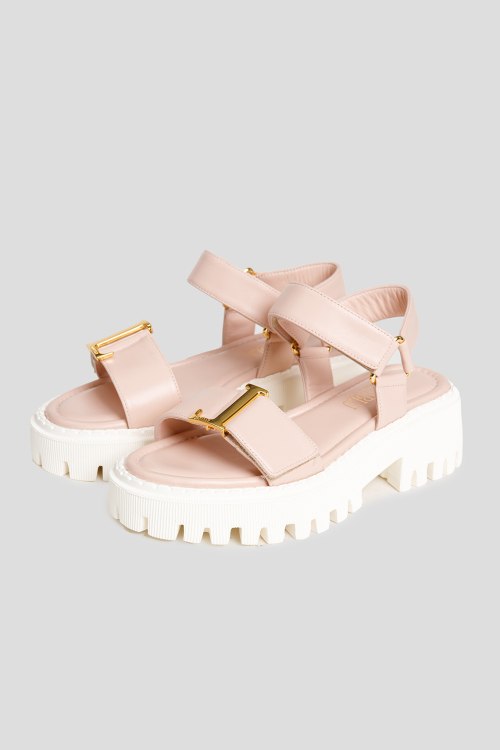 Женские пудровые кожаные сандалии от Loriblu (Лориблу). Модель из гладкой кожи, золотистая фурнитура, ремешок на липучке, кожаная стелька с логотипом, закругленный носок, белая резиновая подошва. Замеры: высота каблука: 6 см, высота платформы: 3.5 см