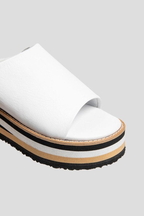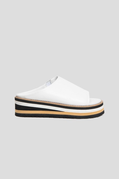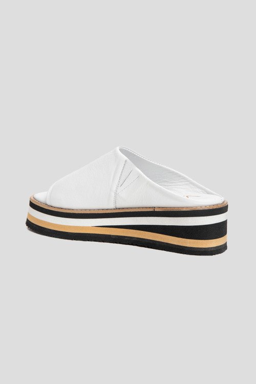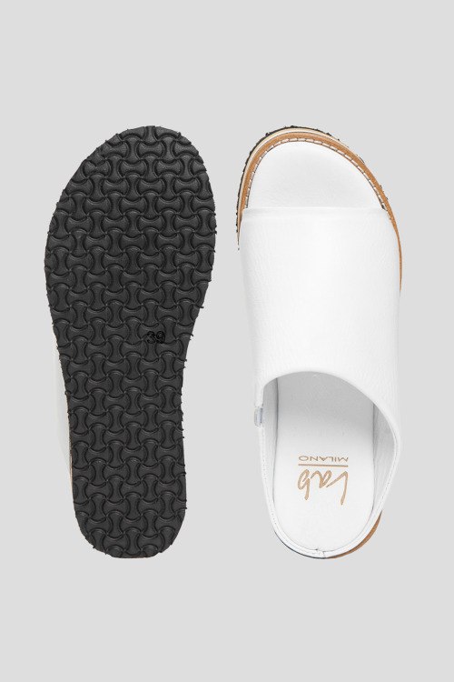 Детали: Женские белые шлепанцы из натуральной кожи от Lab Milano (Лаб Милано). Закругленный носок, широкий ремешок, кожаная стелька, модель на танкетке. Высота каблука: 5.5 см