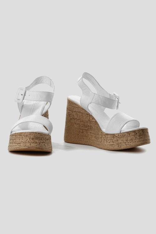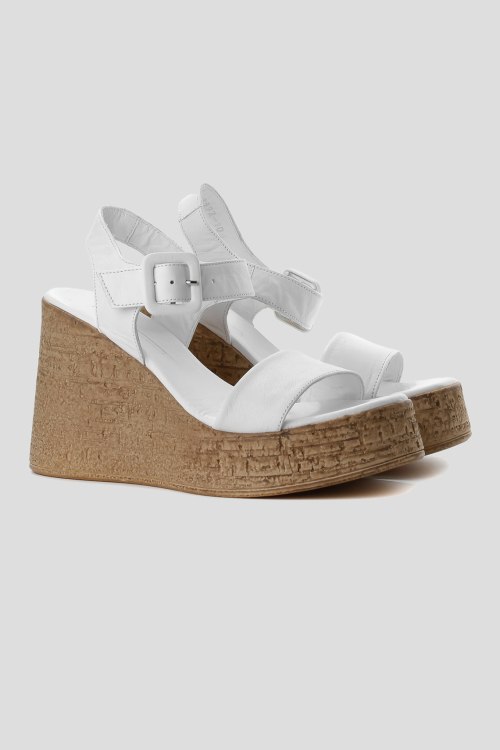 Детали: Женские белые кожаные босоножки от Le Berdes (Ле Бердес). Модель из гладкой кожи, ремешок спереди, ремешок с пряжкой на щиколотке, закругленный носок, высокая пробковая танкетка. Замеры: длина стельки: размер 35 (23 см), 36 (23,5 см), 37 (24 см), 38 (24,5 см), 39 (25 см),40 (25,5)