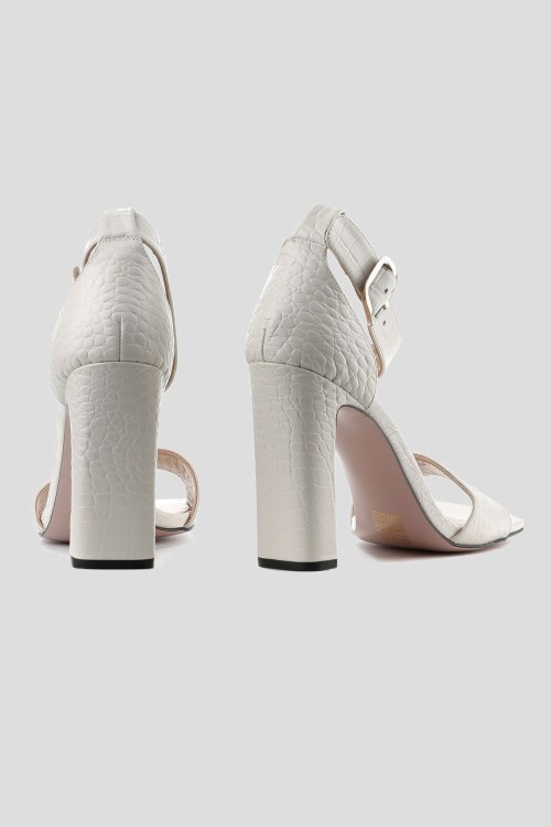 Детали: Женские босоножки молочного оттенка из натуральной кожи от Le Berdes (Ле Бердес). Квадратный носок, кожаная стелька с логотипом бренда, дизайн с тиснением под кожу питона, высокий каблук, регулируемый ремешок на щиколотке. Измерения: размер 35(23 см), размер 36(23.5 см), размер 37(24 см), размер 38(24.5 см), размер 39(25 см), размер 40(25.5 см)