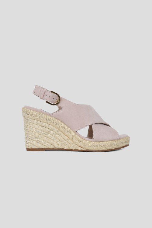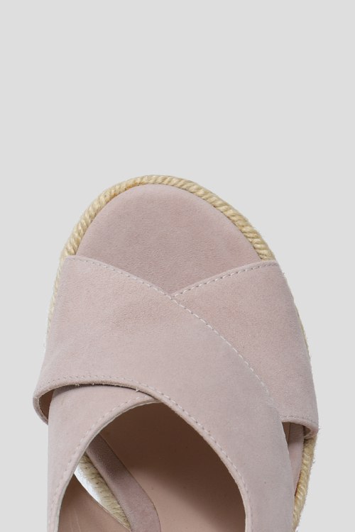 Детали: Женские пудровые босоножки из натуральной замши от Stuart Weitzman (Стюарт Вейцман). Широкие ремешки крест-накрест спереди, ремешок фиксирующий пятку, плетеная танкетка. Измерения: высота танкетки 9 см, высота платформы 2 см