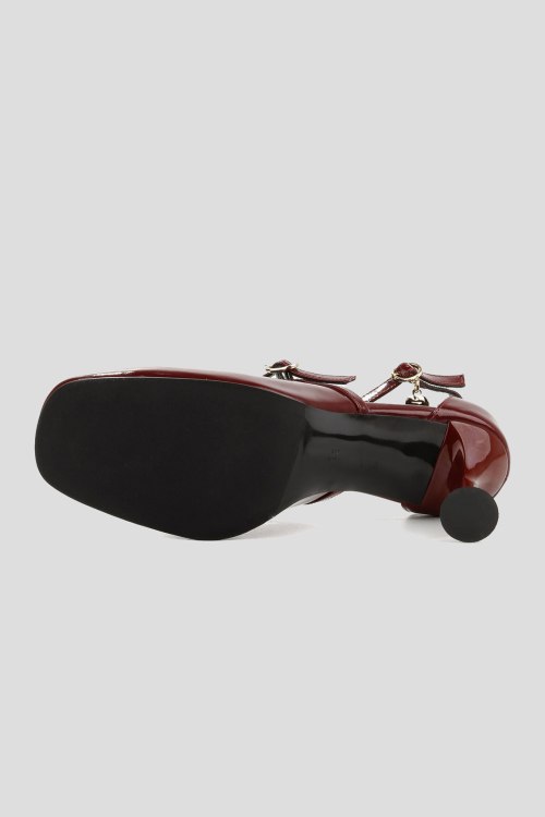 Детали: Женские бордовые лаковые босоножки от Le Berdes (Ле Бердес). Глянцевый эффект, тонкие ремешки с пряжками, подвеска с сердечком, квадратный носок. Высота каблука: 7 см. Замеры: длина стельки: размер 35 (23 см), 36 (23,5 см), 37 (24 см), 38 (24,5 см), 39 (25 см),40 (25,5)