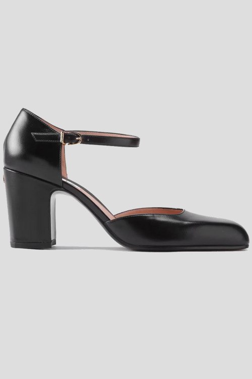 Детали: Женские черные туфли из лаковой кожи от Bally (Балли). Заостренный закрытый носок, закрытая пятка, регулируемый ремешок на щиколотке, высокий устойчивый каблук