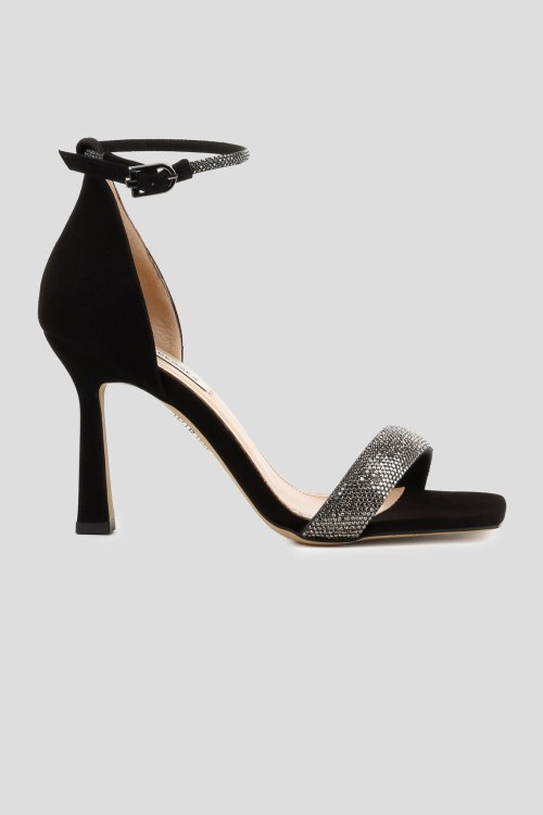 Детали: Женские черные замшевые босоножки от Le Berdes (Ле Бердес). Ремешок со стразами, квадратный носок, закрытая пятка, ремешок с пряжкой на щиколотке, высокий каблук, кожаная стелька. Высота каблука: 9 см. Замеры: длина стельки: размер 35 (23 см), 36 (23,5 см), 37 (24 см), 38 (24,5 см), 39 (25 см),40 (25,5)