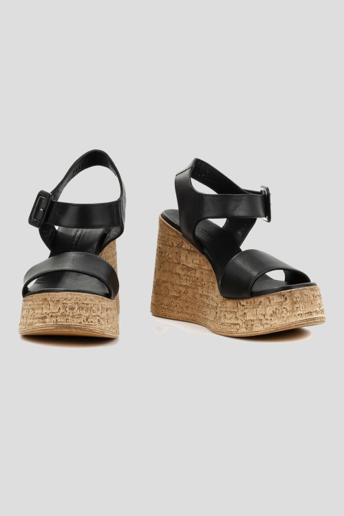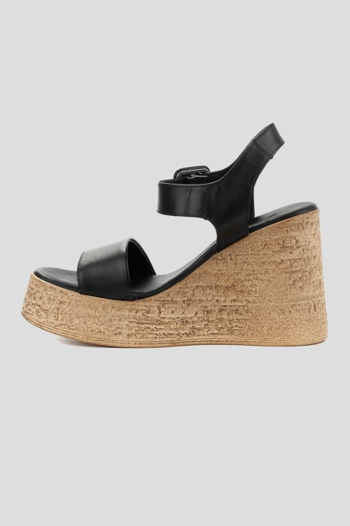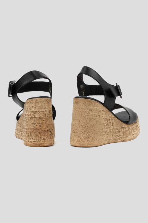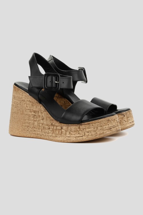 Детали: Женские черные кожаные босоножки от Le Berdes (Ле Бердес). Модель из гладкой кожи, ремешок спереди, ремешок с пряжкой на щиколотке, закругленный носок, высокая пробковая танкетка. Замеры: длина стельки: размер 35 (23 см), 36 (23,5 см), 37 (24 см), 38 (24,5 см), 39 (25 см),40 (25,5)