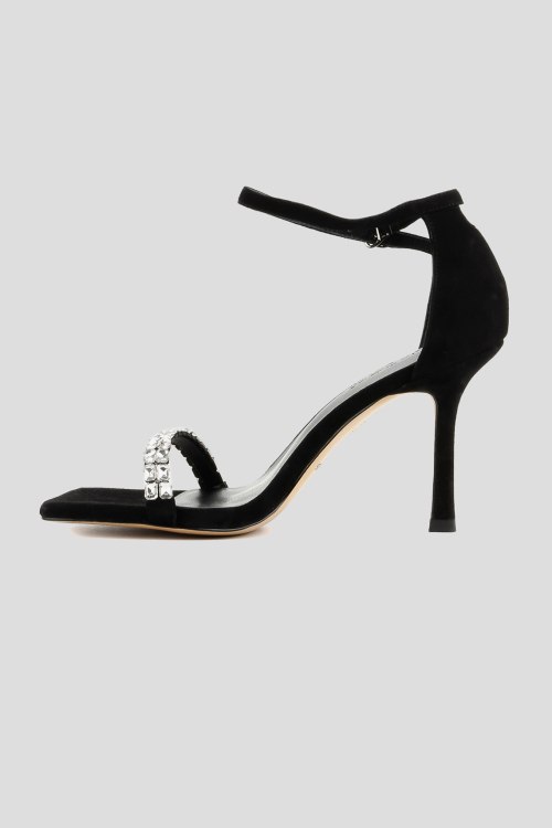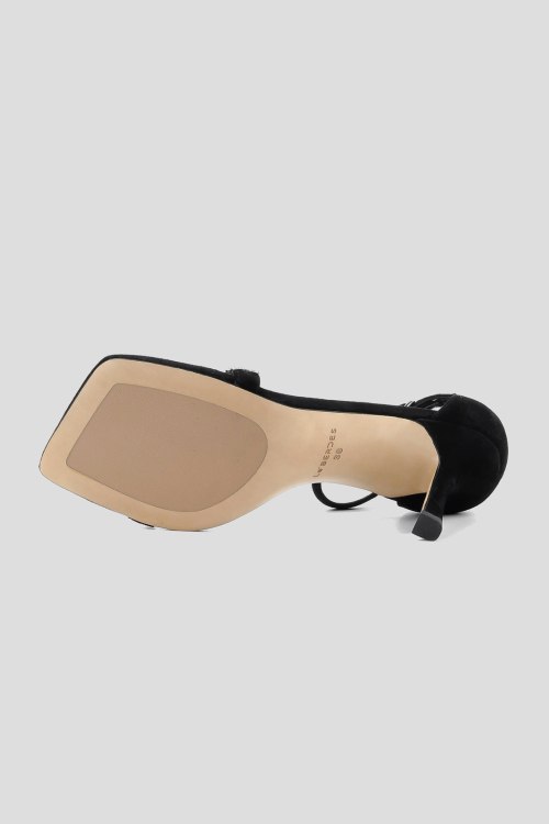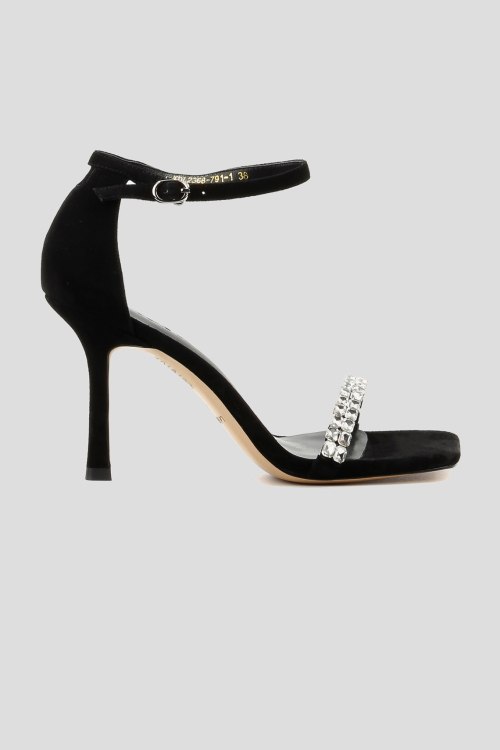 Детали: Женские черные замшевые босоножки от Le Berdes (Ле Бердес). Тонкий ремешок с камнями, ремешок на щиколотке, квадратный носок, каблук-шпилька. Высота каблука: 9 см. Замеры: длина стельки: размер 35 (22,5 см), 36 (23 см), 37 (23,5 см), 38 (24,5 см), 39 (25 см),40 (25,5)