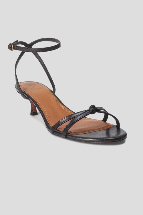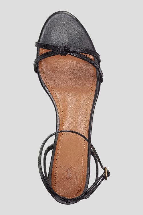 Детали: Женские черные босоножки из натуральной кожи от Polo Ralph Lauren (Поло Ральф Лорен). Закругленный носок, тонкие ремешки, маленький каблук-шпилька, кожаная стелька с логотипом