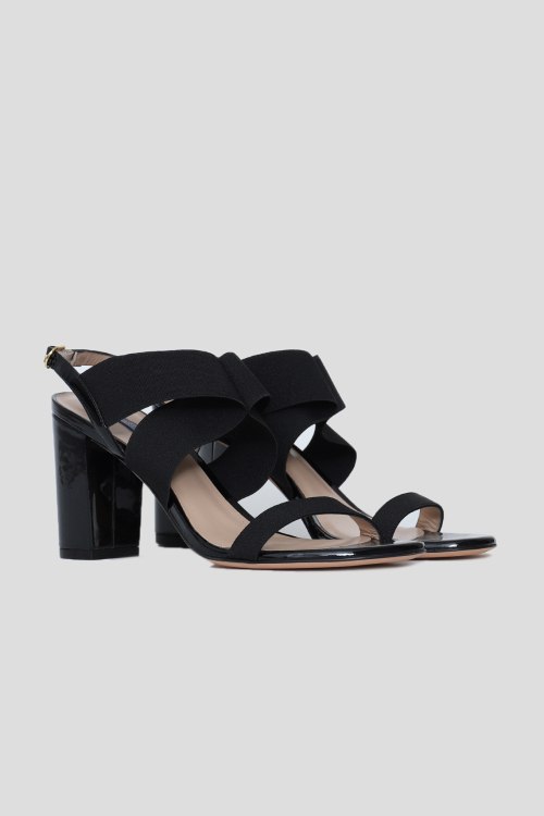 Детали: Женские черные босоножки из натуральной лаковой кожи от Stuart Weitzman (Стюарт Вейцман). Эластичные ремешки крест-накрест, ремешок с пряжкой фиксирующий пятку, широкий каблук. Измерения: высота каблука 9.5 см