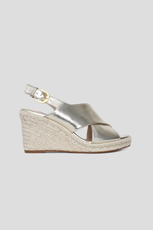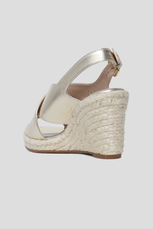 Детали: Женские золотистые босоножки из натуральной кожи от Stuart Weitzman (Стюарт Вейцман). Широкие ремешки крест-накрест спереди, ремешок фиксирующий пятку, плетеная танкетка. Измерения: высота танкетки 9 см, высота платформы 2 см