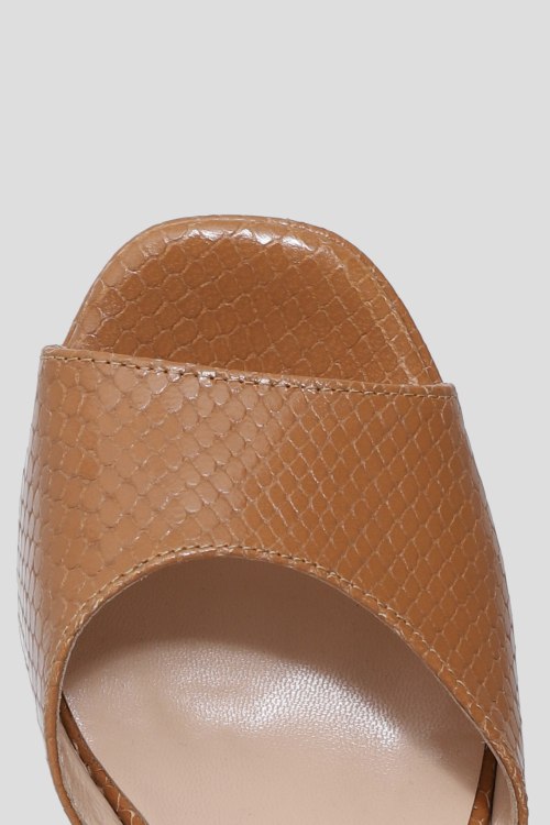 Детали: Жеснкие светло-коричневые босоножки из натуральной кожи от Pinko (Пинко). Тиснение под змеиную кожу, ремешок на щиколотке с металлической пряжкой, платформа и широкий каблук. Измерения: высота каблука 11 см, высота платформы 4 см