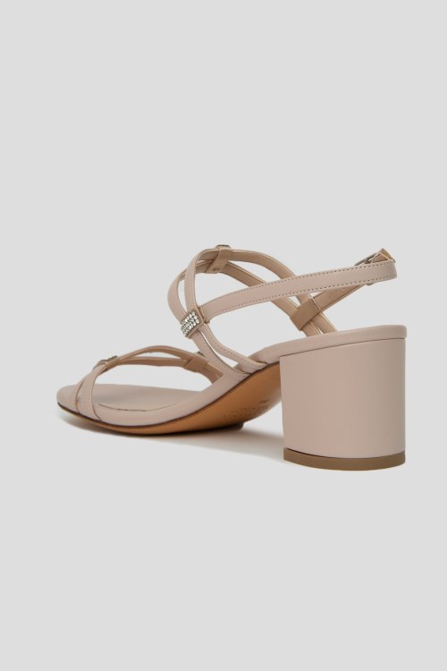 Босоножки из натуральной кожи. Модель на устойчивом каблуке, застегиваются на регулируемую застежку на щиколотке. Декорированы стразами. Измерения: высота каблука - 6,5 см
