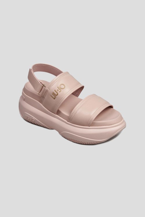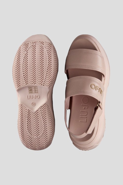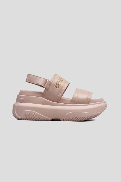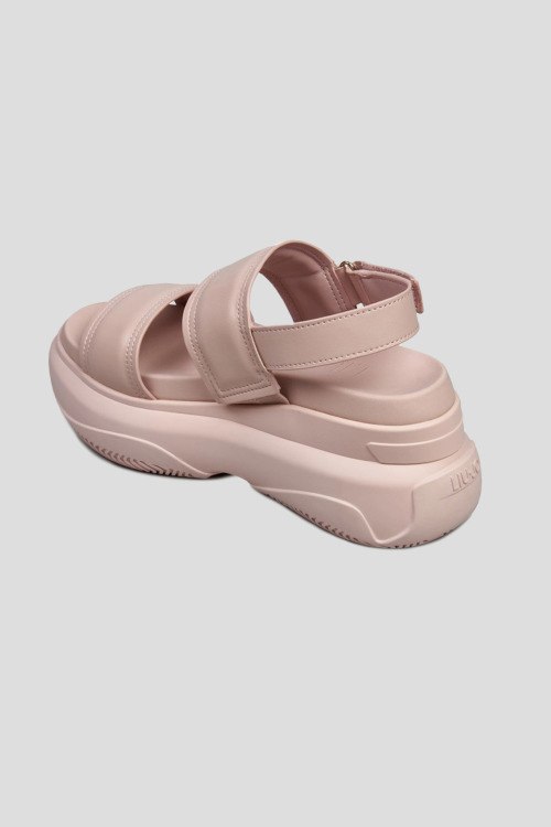 Детали: Женские пудровые босоножки из искусственной кожи от Liu Jo (Лиу Джо). Закругленный, открытый носок, широкие ремешки, рельефная платформа, металлический золотистый логотип сбоку. Платформа: 6,5-8,5 см