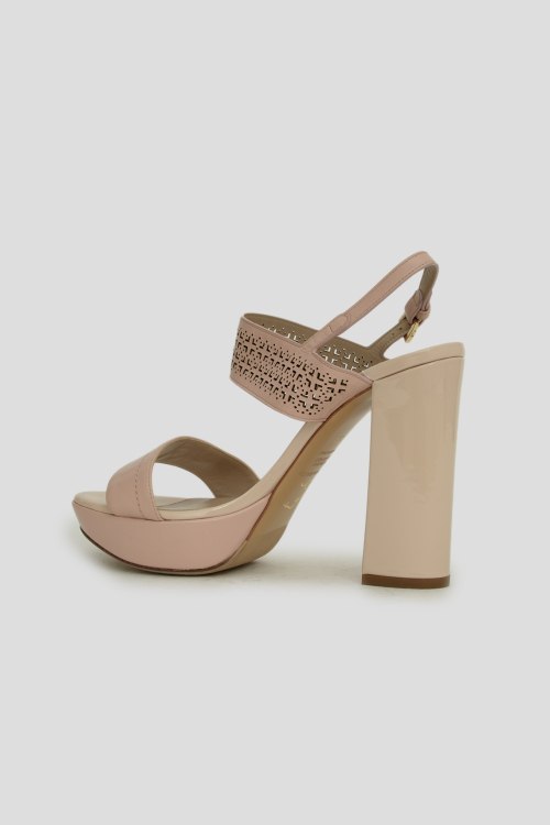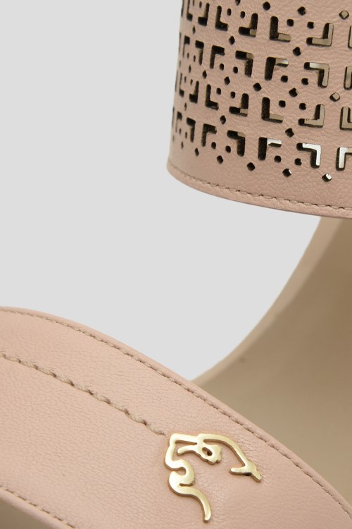 Детали: Босоножки из натуральной кожи. Однотонная модель, высокая платформа, широкий каблук, застежка на щиколотке. Дополнены перфорацией