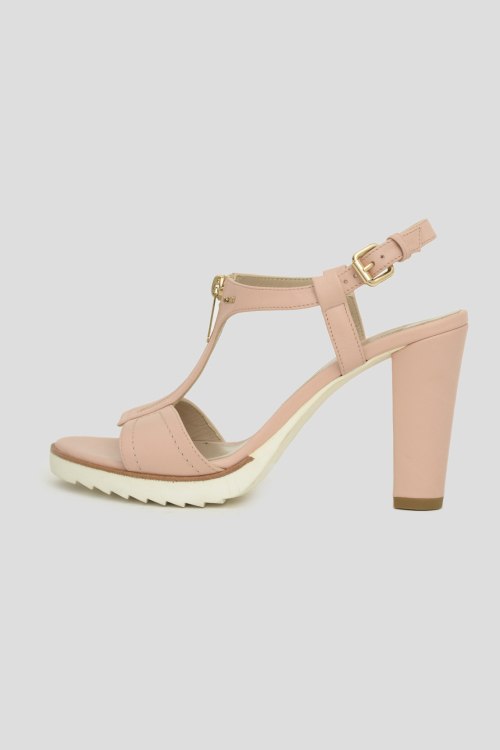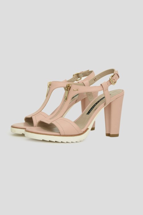 Детали: Босоножки из натуральной кожи. Однотонная модель, тонкие ремешки, рельефная подошва белого цвета, широкий каблук. Спереди застежка-молния