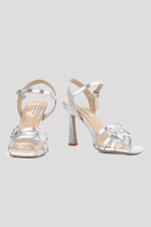 Детали: Женские серебристые кожаные босоножки от Le Berdes (Ле Бердес). Модель из гладкой кожи с эффектом металлик, тонкие ремешки, высокий каблук, квадратный носок. Высота каблука: 9 см. Замеры: длина стельки: размер 35 (23 см), 36 (23,5 см), 37 (24 см), 38 (24,5 см), 39 (25 см),40 (25,5)