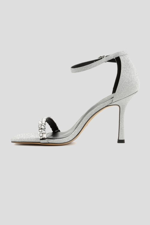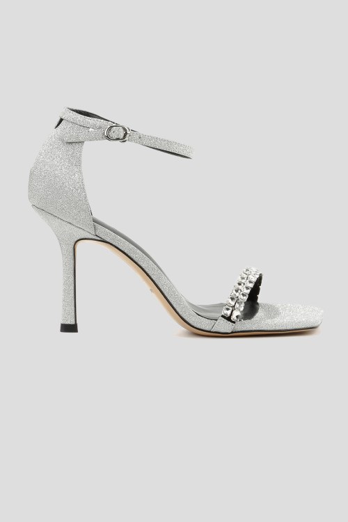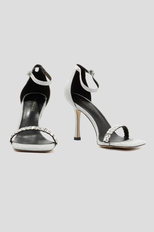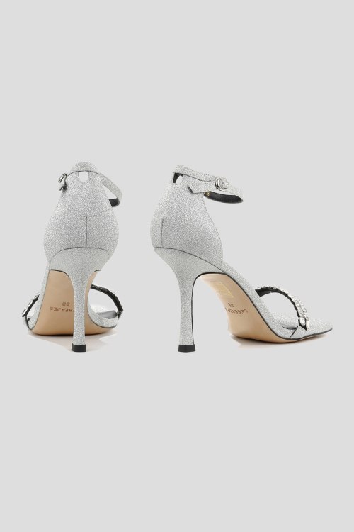 Детали: Женские серебристые текстильные босоножки от Le Berdes (Ле Бердес). Тонкий ремешок с камнями, ремешок на щиколотке, квадратный носок, каблук-шпилька. Высота каблука: 9 см. Замеры: длина стельки: размер 35 (22,5 см), 36 (23 см), 37 (23,5 см), 38 (24,5 см), 39 (25 см),40 (25,5)