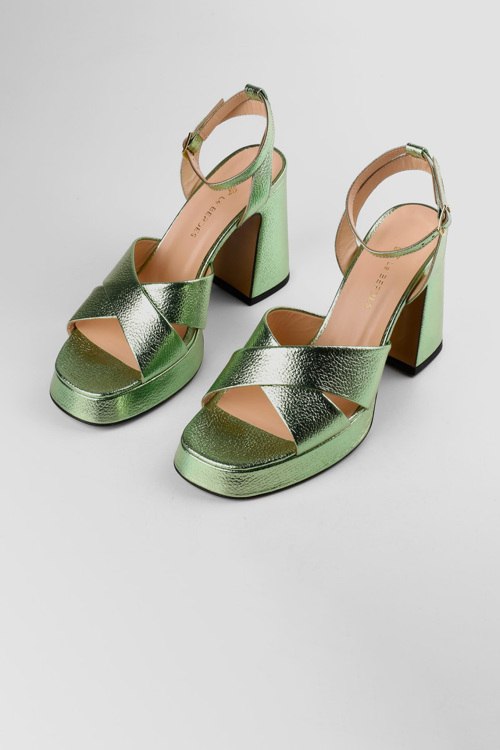 Детали: Женские зеленые кожаные босоножки от Le Berdes (Ле Бердес). Эффект металлик, передние ремешки крест-накрест, ремешок с пряжкой на щиколотке, широкий каблук, квадратный носок, кожаная стелька. Высота каблука: 10 см. Полнота модели: средняя. Замеры стельки: р.36 (23,5 см),р.37 (24 см),р.38 (24,5 см),р.39 (25 см),р.40 (25,5 см),р.41 (26 см),р.42 (26,5 см)