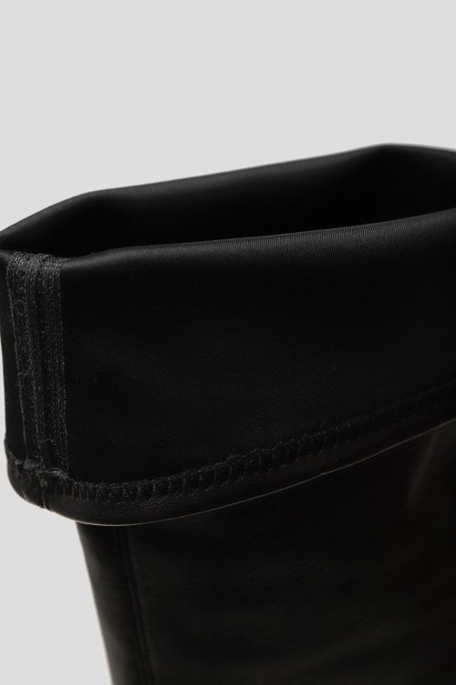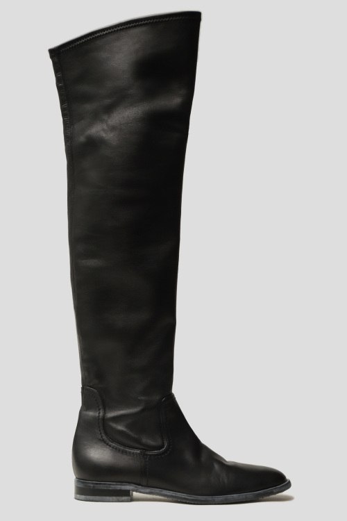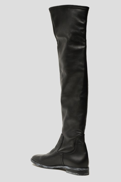 Женские черные ботфорты из натуральной кожи от Baldinini (Балдинини). Закругленный носок, асимметричный дизайн верха, низкий каблук. Измерения: высота каблука-2.5 см, высота голенища-54 см, обьем-43 см