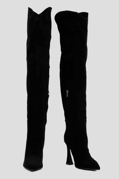 Детали: Женские черные ботфорты из натуральной замши от Le Berdes (Ле Бердес). Заостренный носок, сбоку застежка на молнию, высокий каблук, модель утепленная байкой. Высота каблука: Выше 71мм Замеры: р. 35 (23 см), р. 36 (23,5 см), р. 37 (24 см), р. 38 (24,5 см), р. 39 (25 см), р. 40 (25,5 см), р. 41 (26 см)